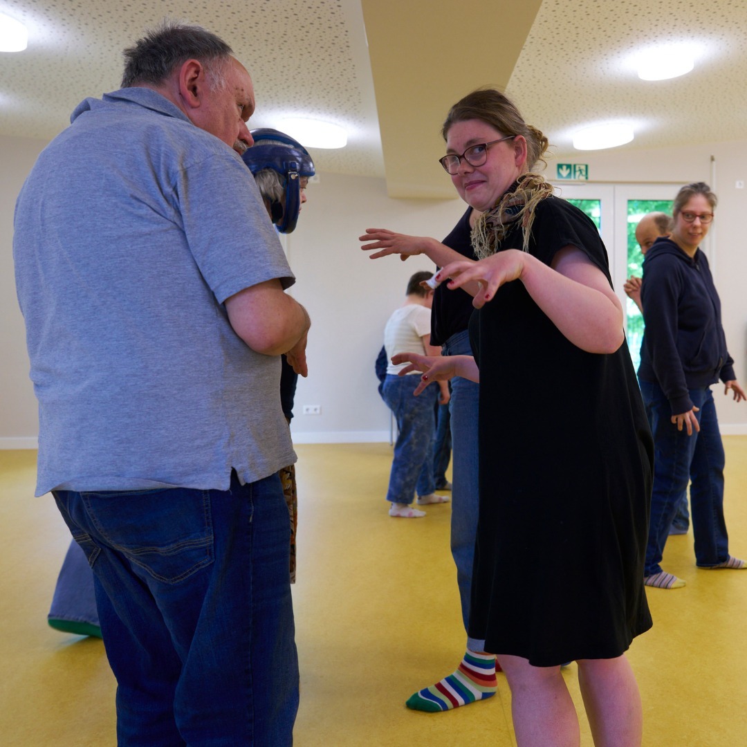 Von Mai bis Dezember 2024 fand der inklusive Theaterworkshop „Willkommen in meinem Leben“ unter der Leitung der Theaterpädagogin Swantje Henke statt. Der Workshop wurde von unserem Projekt „Bühne frei“ initiiert und in Kooperation mit Swantje Henke und der LebensWerkGemeinschaft gGmbH koordiniert und organisiert. Zehn Teilnehmerinnen – Bewohnerinnen der LebensOrte – nahmen daran teil. Sie entwickelten ihre eigenen Geschichten und erlebten die Freude am Theaterspielen. Die LebensOrte der LebensWerkGemeinschaft gGmbH bieten unterstützende Wohnangebote für Menschen mit Assistenzbedarf in Berlin. Das Projekt fand im Rahmen der Sozialraumorientierung in der Villa Mittelhof statt, einer sozialen Einrichtung, die Menschen mit unterschiedlichen Bedürfnissen einen Raum zur Entfaltung bot.