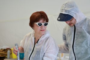 Im Workshop vermittelten Silja Korn und Jac Carley verschiedene abstrakte Maltechniken, während der Choreograf Ingo Reulecke für den körperlich-sinnlichen Zugang zur Malerei sorgte; Bewegung, Improvisation und experimentelles Arbeiten mit Farben führten zu überraschenden künstlerischen Ergebnissen.